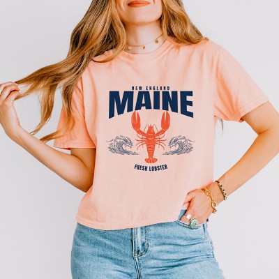 Maine Fresh Lobster Waves - Women's Boxy Crop Top Graphic T-Shirt