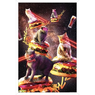 Trends International James Booker - Galaxy Laser Cats On Cheeseburgers Framed Wall Poster Prints