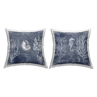 Stupell Industries Vintage European Shells and Nautical Seahorse 2pc Indoor Decorative Throw Pillow Set, 18 x 18 Each