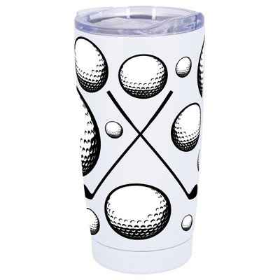 100 North 20 Ounce Stainless Steel On the Go Travel Tumbler With Push Top Lid, Golf Ball and Clubs Black