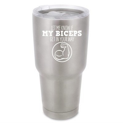 100 North 30 Ounce Stainless Steel On the Go Travel Tumbler With Push Top Lid, Biceps in Your Way Silver