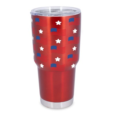 100 North 30 Ounce Stainless Steel On the Go Travel Tumbler With Push Top Lid, American Flag Veteran Red