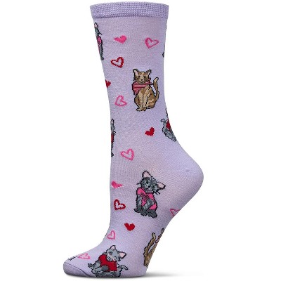 Memoi Women's Fur-Ever Hearts Rayon From Bamboo Crew Socks Lavender 9-11