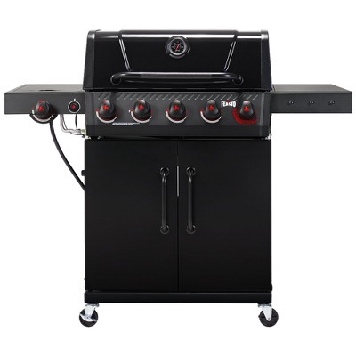 Grill Boss GBC1449M Outdoor BBQ 4 Burner Propane Gas Grill for Barbecue Cooking with Side Burner, Lid, Wheels, Shelves, & Bottle Opener, Black