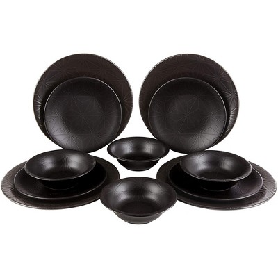 SEVOBAL Grill Tool and Cookware Sets 12 Piece Dinnerware Set Elegant Porcelain Plates Bowls Microwave Safe for Dining, Black, 7"*7"*7"