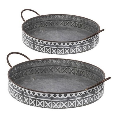 SEVOBAL Cookware Sets Set of 2 18/20 Inch Round Serving Trays Galvanized Iron with Handles for Rustic Tabletop Style, Gray, 37.6"*16.5"*4.5"