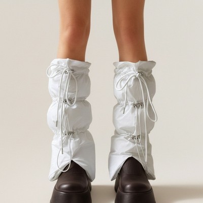Anna-Kaci Women's Puffer Style Leg Warmers with Adjustable Drawstring Boot Cover Design