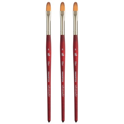Princeton Velvetouch Filbert Brush, Synthetic Bristles, Short Handle Mixed Media Paintbrush, Scarlet, Size 8, Pack of 3