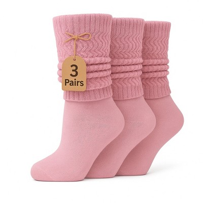 Slouch Socks for Women Cotton Lightweight Scrunch Knee High Socks 2 Pairs Fits Shoe Sizes 5-10