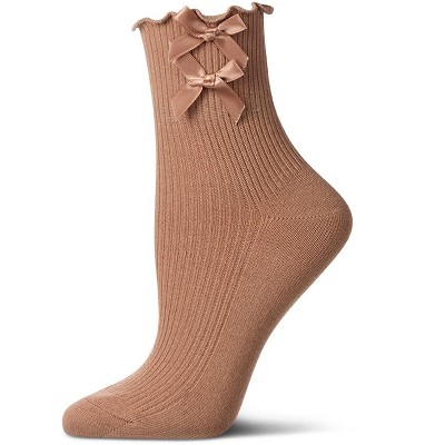 Anna-Kaci 3-Pair Soft Knit Crew Socks with Tiny Dot Pattern, Decorative Ribbon Bow Trim and Smooth Comfortable Stretch Fit