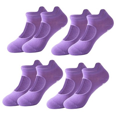 Anna-Kaci Women’s Non Slip Yoga Grip Socks Open Instep Pilates Barre Workout Socks Cotton Stretch Low Cut Athletic Socks 4 Pack