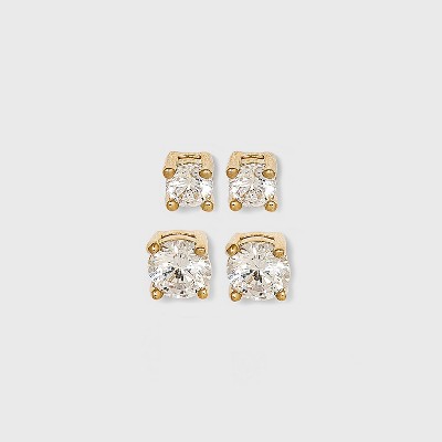 14K Gold Plated Cubic Zirconia Duo Stud Earring Set 2pc - A New Day™: Polished Nickel-Free Metal
