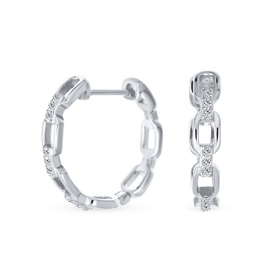Bling Jewelry Elegant Round Paper Clip Link Open Pave CZ Accent Chain Link Hoop Earrings Of Cubic Zirconia .925 Sterling Silver .75 Inch