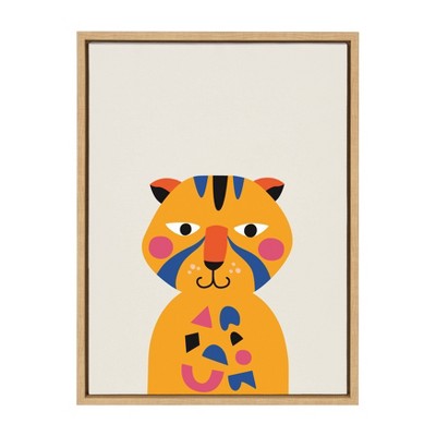 18" x 24" Sylvie Mid Century Modern Baby Elephant Framed Canvas Wall Art by Rachel Lee Natural - Kate and Laurel