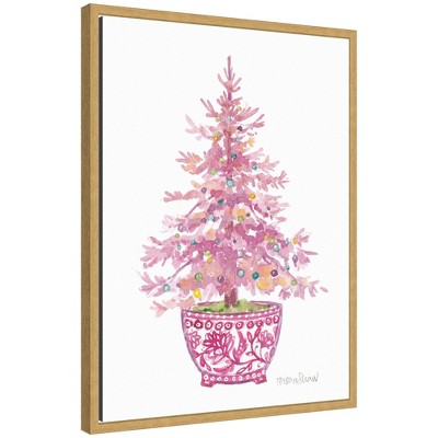 Kate & Laurel All Things Decor 18"x24" Sylvie Beaded Christmas Deer Framed Canvas by Mia Charro Rustic Natural