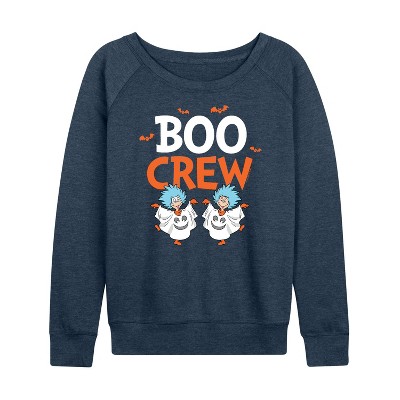 Women's - Dr. Seuss - Boo Crew Thing 1 and Thing 2 Lightweight French Terry Wide Neck Long Sleeve Graphic Shirt