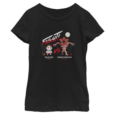 Girls Stranger Things Eleven vs Demogorgon Pixels T Shirt