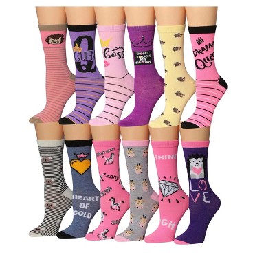 Tipi Toe Women's 12 Pairs Graceful Florals Soothing Tones Colorful Patterned Lightweight Crew Socks