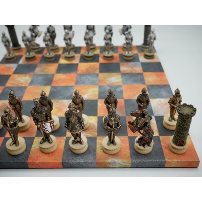 WorldWise Imports Chess Set - Civil War Resin Chessmen Generals on Cherry Stain Chest