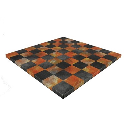 WorldWise Imports Chess Set - Painted Resin Medieval Knights Pieces on Fire & Dusky Black Faux Leatherette Chess Board
