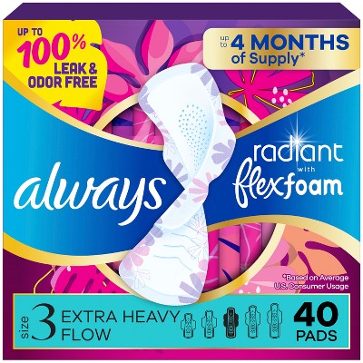 Always Radiant Extra Heavy Flow Absorbency with Flex Foam Pads - Scented - Size 3