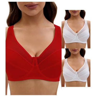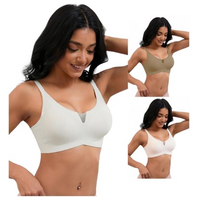 INSPIRE CHIC Women's Lace Front Closure Full Coverage Minimizers Wirefree Wide Straps Soft Bras 3 Packs