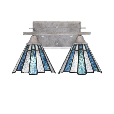 Toltec Lighting Uptowne 2 - Light Vanity in Aged Silver with 7" Sea Ice Art Glass Shade