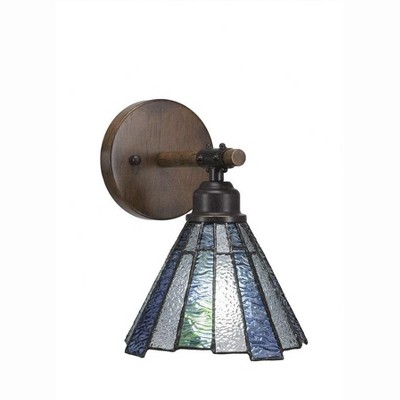 Toltec Lighting Blacksmith 1 - Light Vanity in Painted Wood/Dark Granite with 7" Sea Ice Art Glass Shade