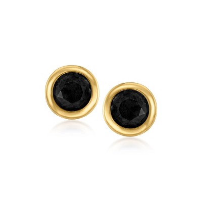 Ross-Simons Bezel-Set Black Onyx Stud Earrings in 10kt Yellow Gold