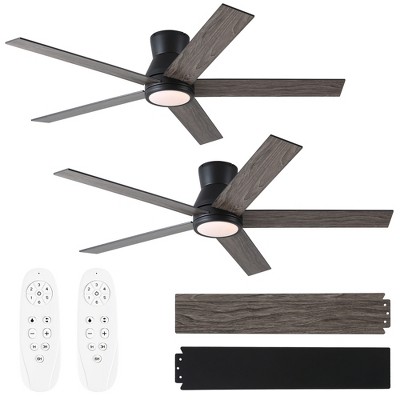 YUHAO Hushine 2-pack 52 in. Indoor Black Flush Mount LED Standard Ceiling Fan with Light, Remote Included and Reversible Blade