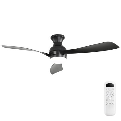 Wanze of Ocean 52 in. Modern Indoor Black 6-Speed Black Blades Flush Mount Ceiling Fan with 3-Color Dimmable LED Light