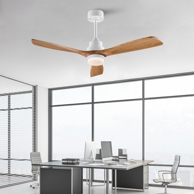 Wanze of Ocean 52 in. Smart White Natural Wood Brown Blades 2-Size Downrod Mount Standard Ceiling Fan with 3-Color Dimmable LED Light