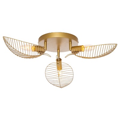24" Theo Leaf Shade Ceiling Light - River of Goods: Gold Metal, 3-Bulb, UL Listed