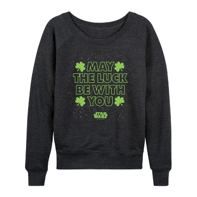 Women's - Star Wars - St. Patricks Day May Luck Be With You Lightweight French Terry Wide Neck Long Sleeve Graphic Shirt