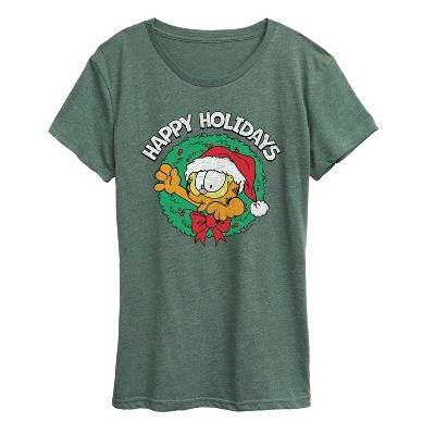 Women's - Garfield - Happy Holidays Wreath Short Sleeve Graphic T-Shirt