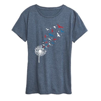 Women's - Instant Message - Patriotic Dandelion Birds Short Sleeve Graphic T-Shirt