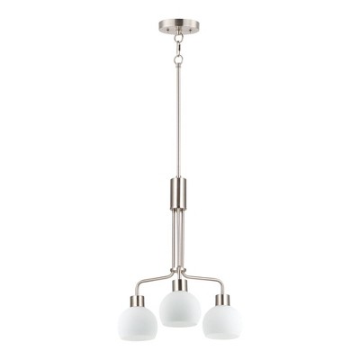 Progress Lighting Gather 3-Light Chandelier, Brushed Nickel, White Etched Glass Shades