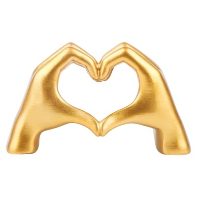 Itopfox Gold Resin Heart Hands Sculpture 1 Piece 4.72x3.15in Abstract Modern Statue for Living Room Bedroom Office Shelf Decor