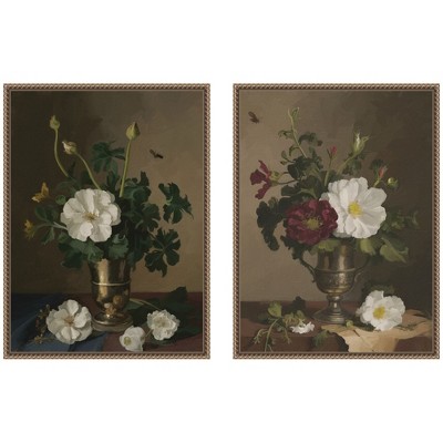Kate and Laurel Winter Peonies 2 Piece Framed Canvas Wall Art Set by Amy Lighthall, Sylvie Beaded Dark Gold, 2 Piece Set 18x24