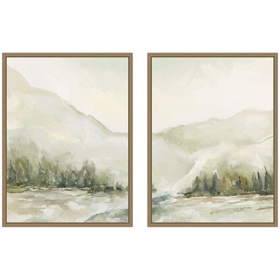 Kate and Laurel Tranquil Landscape 2 Piece Framed Canvas Wall Art Set by Amy Lighthall, Sylvie Beaded White, 2 Piece Set 18x24