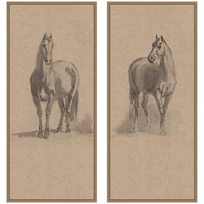 Kate and Laurel Forty Three Studies of Horses and Riders 2 Piece Framed Canvas Wall Art Set by Nostalgia Prints, Sylvie Dark Gold, 2 Piece Set 18x40