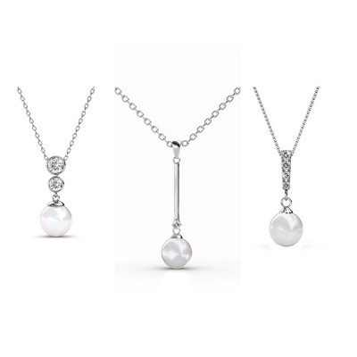 Cate & Chloe Gabrielle Tatum Genevieve 18K White Gold Plated Necklace Set 3 Pack Shell Pearl Swarovski Crystal Pendant Gift for Women