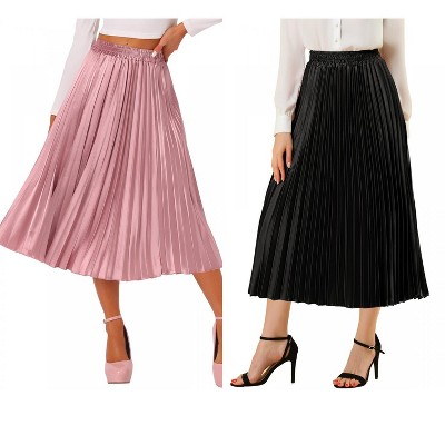 Allegra K Women's Party Elastic Waist Metallic Shiny Pleated Midi Skirt 2 Pcs