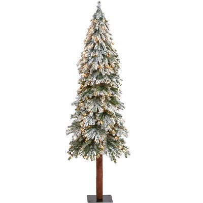 Nearly Natural 6-ft Flocked Grand Alpine Artificial Christmas Tree with 300 Clear Lights and 601 Bendable Branches on Natural Trunk