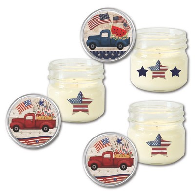 Courtside Market Celebrate 250 Patriotic Blue & Red Truck 4 oz Citronella Soy Wax Candle 3 pc. Set