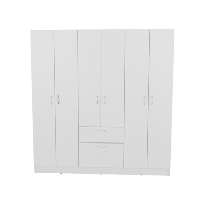 ORRD Tall Wardrobe & Kitchen Cabinet with 2 Doors, 2 Drawers & 5 Storage Spaces, White