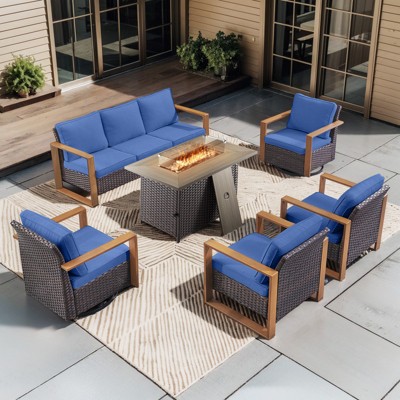 Gymojoy 6 Piece Patio Furniture Set with 41" Fire Pit Table Wicker Patio Sectional Sofa Set Outdoor Seating Furniture with Thickened Cushion