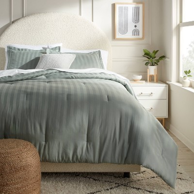 8pc Clipped Stripe Poms Comforter and Sheet Set Gray - Threshold™