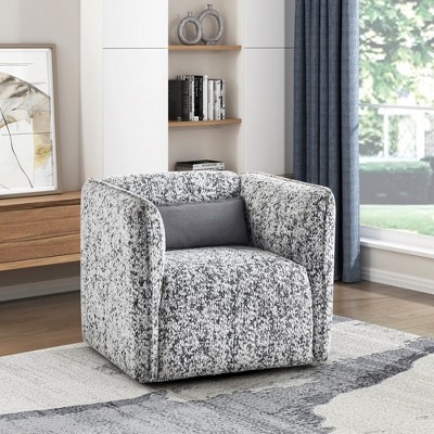 Jacquard Fabric Upholstery Plywood Modern Swivel Accent Chair with Foam Padding, Attached Cushions, 360-Degree Swivel and Lumbar Pillow