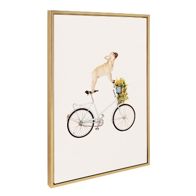 Kate and Laurel Sylvie Frenchie Bulldog on a Bicycle Framed Canvas by Amy Peterson Art Studio